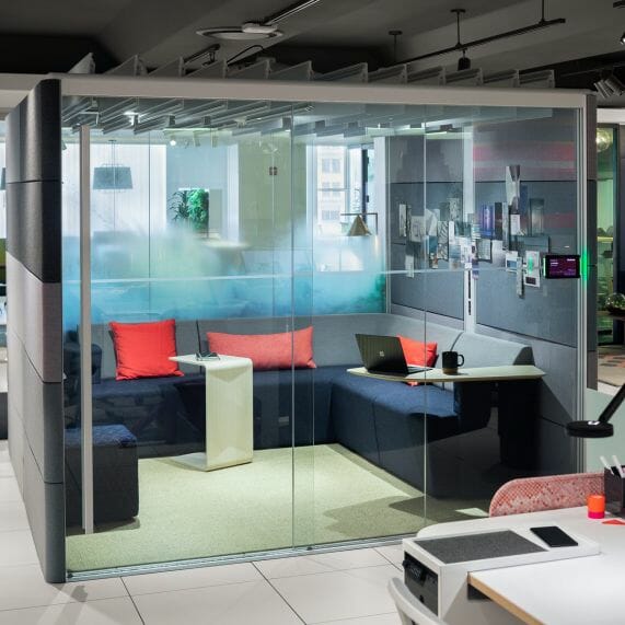 Introducing the Air3 Meeting Pods by Orangebox, a reconfigurable modular meeting room designed to transform your workspace into a hub of productivity and privacy. With its innovative features and sleek design, the Air3 offers a complete solution for your meeting and collaboration needs. Customization is at the heart of the Air3 Meeting Pods. With interchangeable panels, you have the flexibility to refresh your pod whenever you desire. Swap, change, and refresh colours and fabrics to match your unique preferences and requirements. The combination of high-quality glass and soft acoustic panelling not only creates a refined aesthetic but also ensures exceptional insulation and speech privacy, enabling undisturbed conversations. Upgrade your workspace with the Air3 Meeting Pods by Orangebox, and experience the benefits of a sleek and functional meeting room that enhances privacy, collaboration, and productivity.