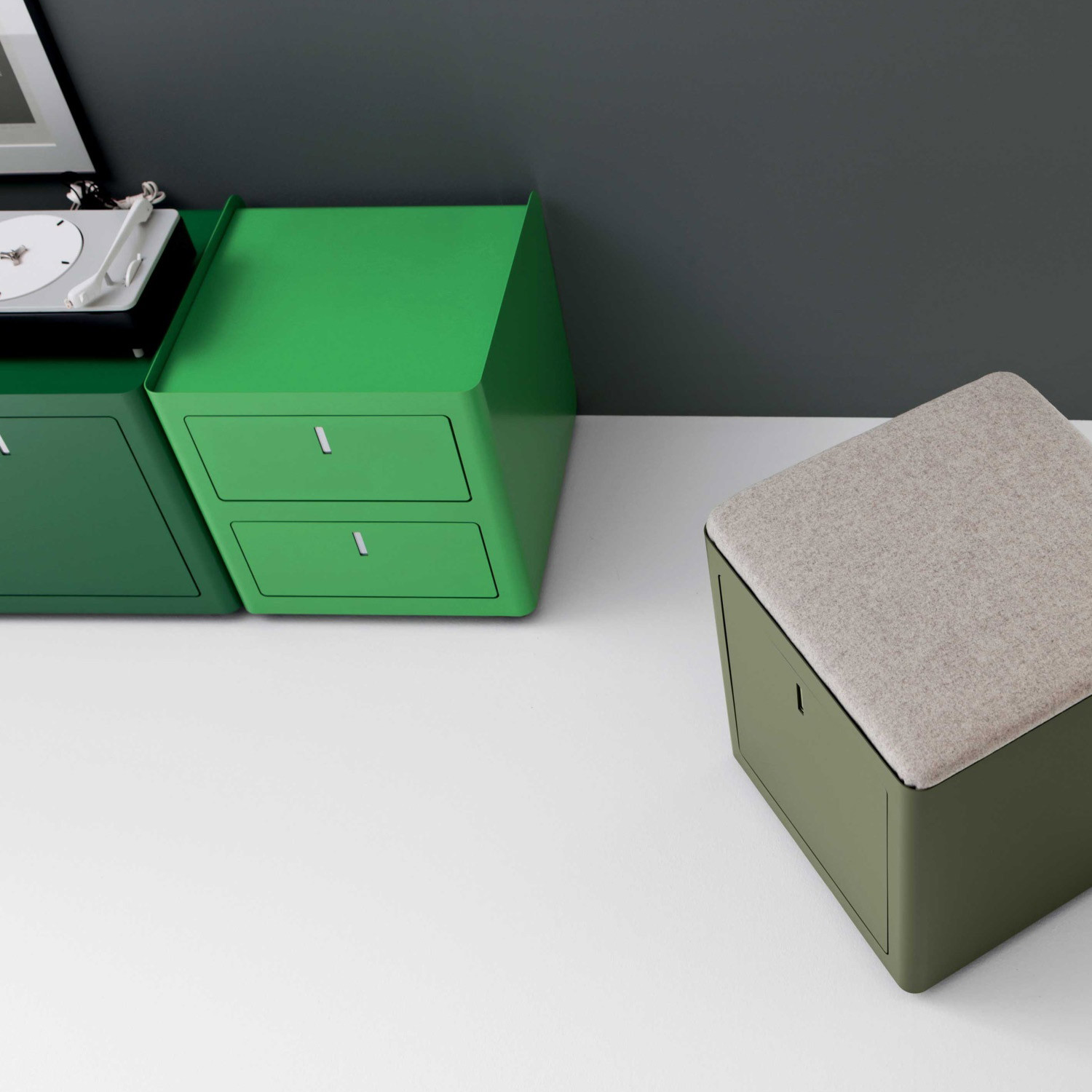 Introducing the Dieffebi CBox Pedestal: Unleash Your Creativity with Style and Functionality. Experience a multi-sensory design experience with the Dieffebi CBox Pedestal. This innovative metal container, equipped with wheels, combines practicality, customization, and style. Its soft and customizable shape is available in a range of nine vibrant colours, allowing you to create a truly unique storage solution that complements your workspace. The CBox Pedestal features retractable handles on the front panels, not only providing functionality but also adding a touch of graphic elegance. You have the option to customize the top by adding a slim and comfortable fabric-coated pillow, instantly transforming the container into a convenient and stylish seat, enhancing the versatility of this piece. Constructed from high-thickness recyclable steel, the CBox Pedestal is built to last. The full extension ball-bearing slides on all drawers ensure smooth and effortless drawer operation, even when storing heavy items. The heavy-duty swivel castors allow for easy mobility, making it effortlessly portable within your workspace. The CBox Pedestal is not only a functional storage solution but also a visual statement. Its sleek design and vibrant colour options add a modern and playful touch to any environment, making it perfect for creative office spaces, coworking areas, or shared meeting spaces. Customization is key, and the CBox Pedestal offers the possibility of tailored colours to match your unique style. With its high-quality construction and attention to detail, this pedestal is not just a storage device; it’s a work of art.