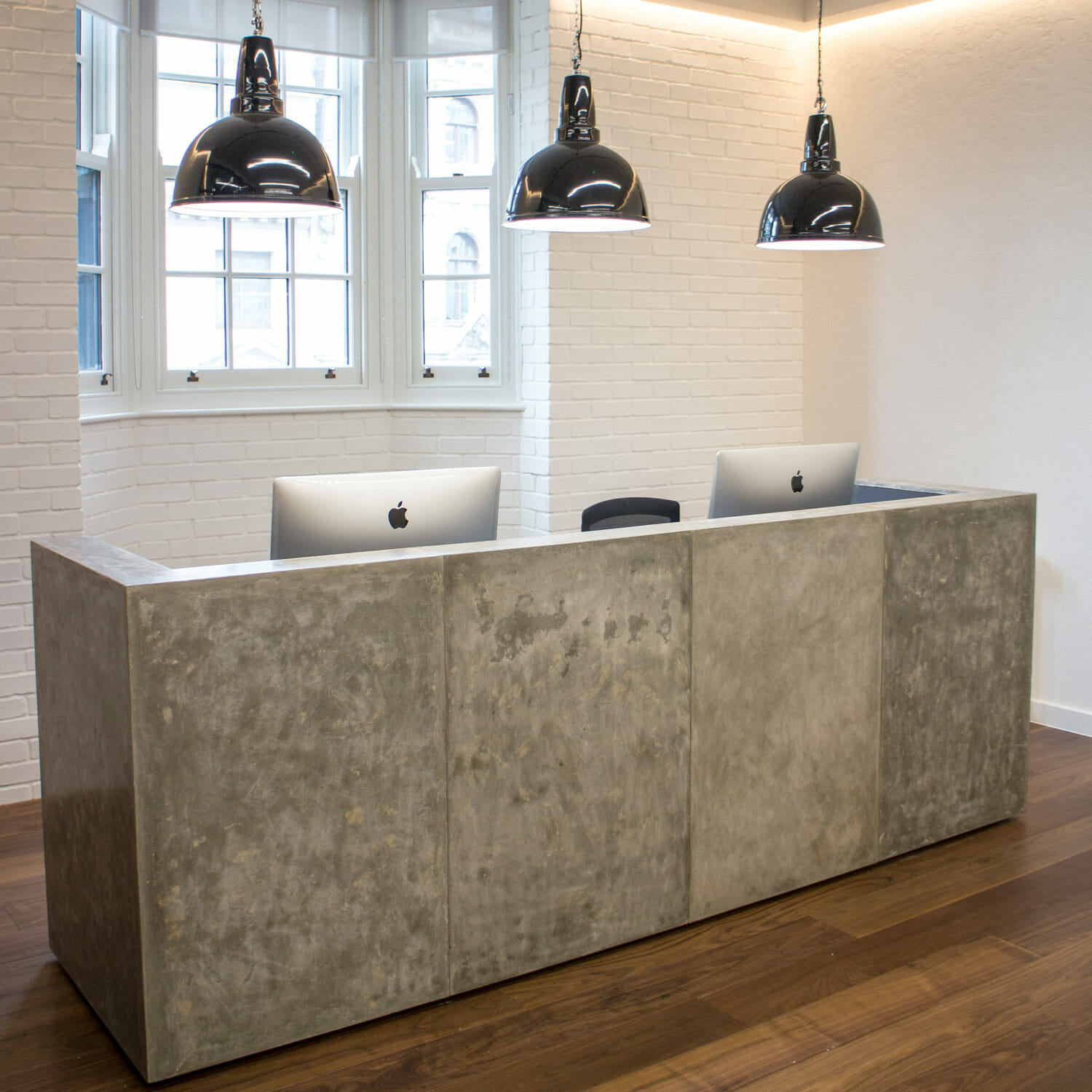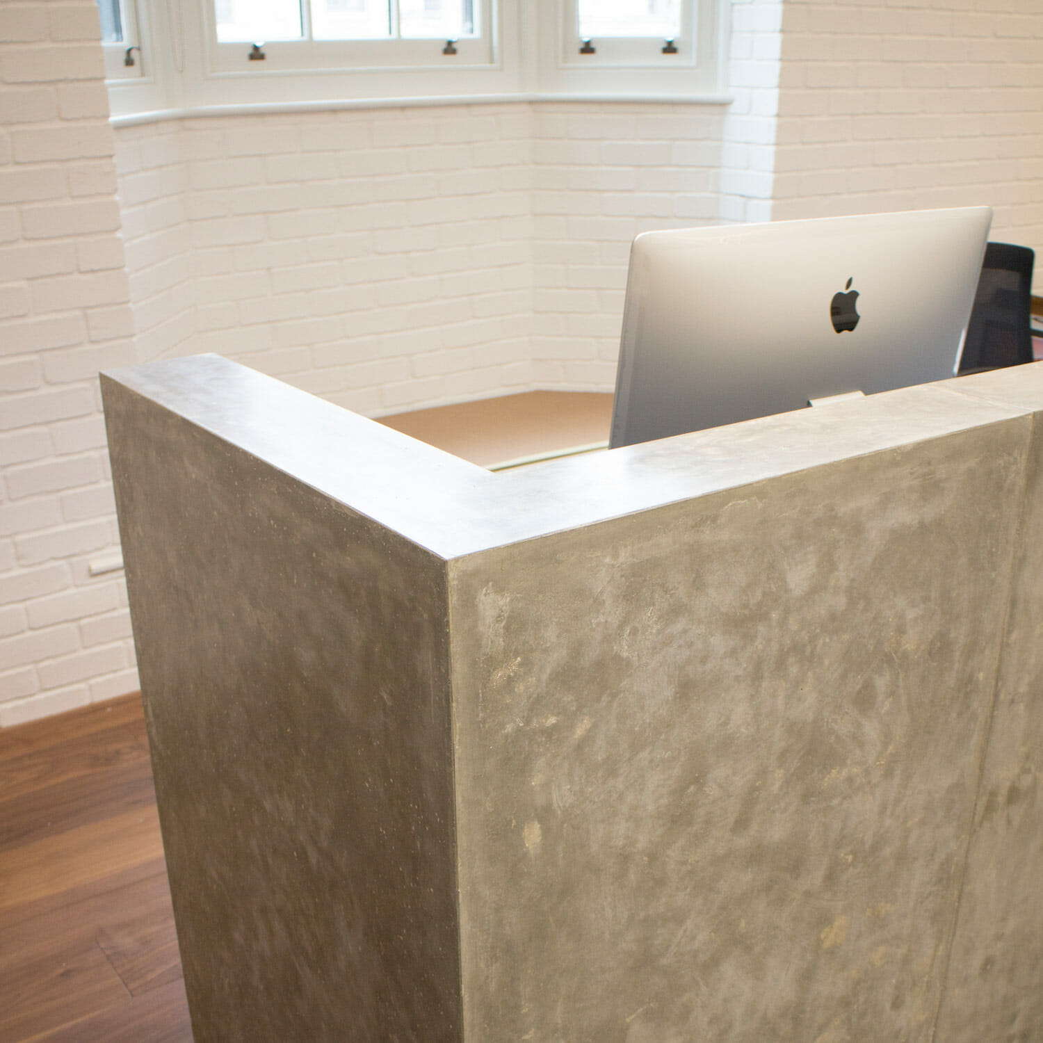 You can either choose the concrete reception counter as pictured here, or work with us to create your own polished and bespoke made to measure concrete desk.