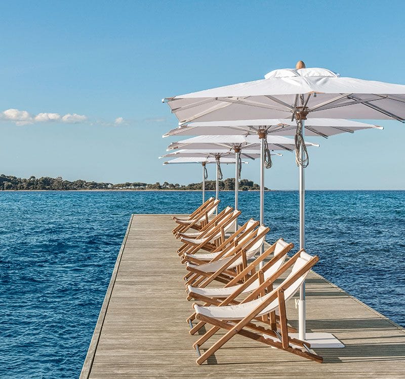 The Elle Deck Chair comes with a range of canopy options to enhance your lounging experience. Choose from a variety of acrylic canopies in ivory, dove grey, cherry red, or naval blue. These canopies not only provide protection from the sun but also add a hint of luxury and style to your outdoor setting.