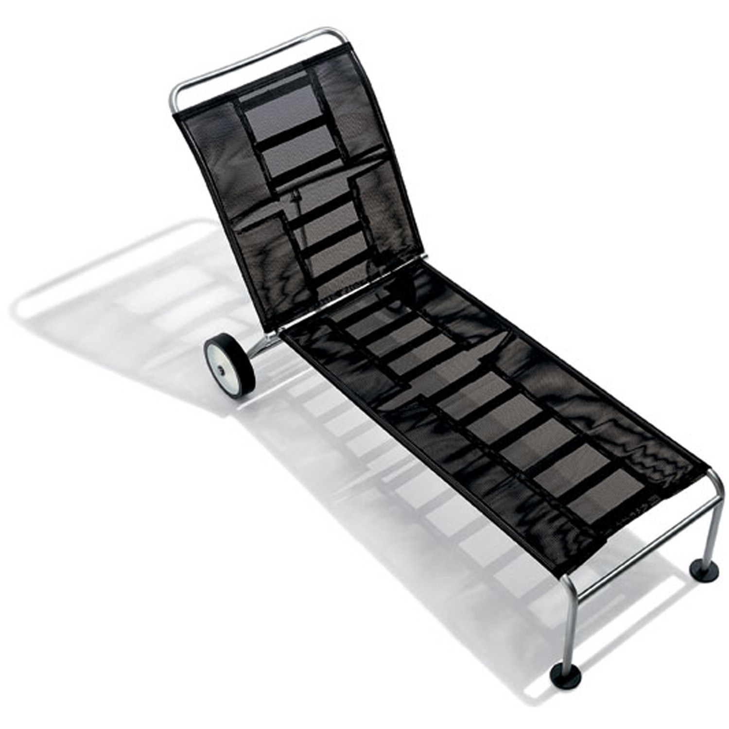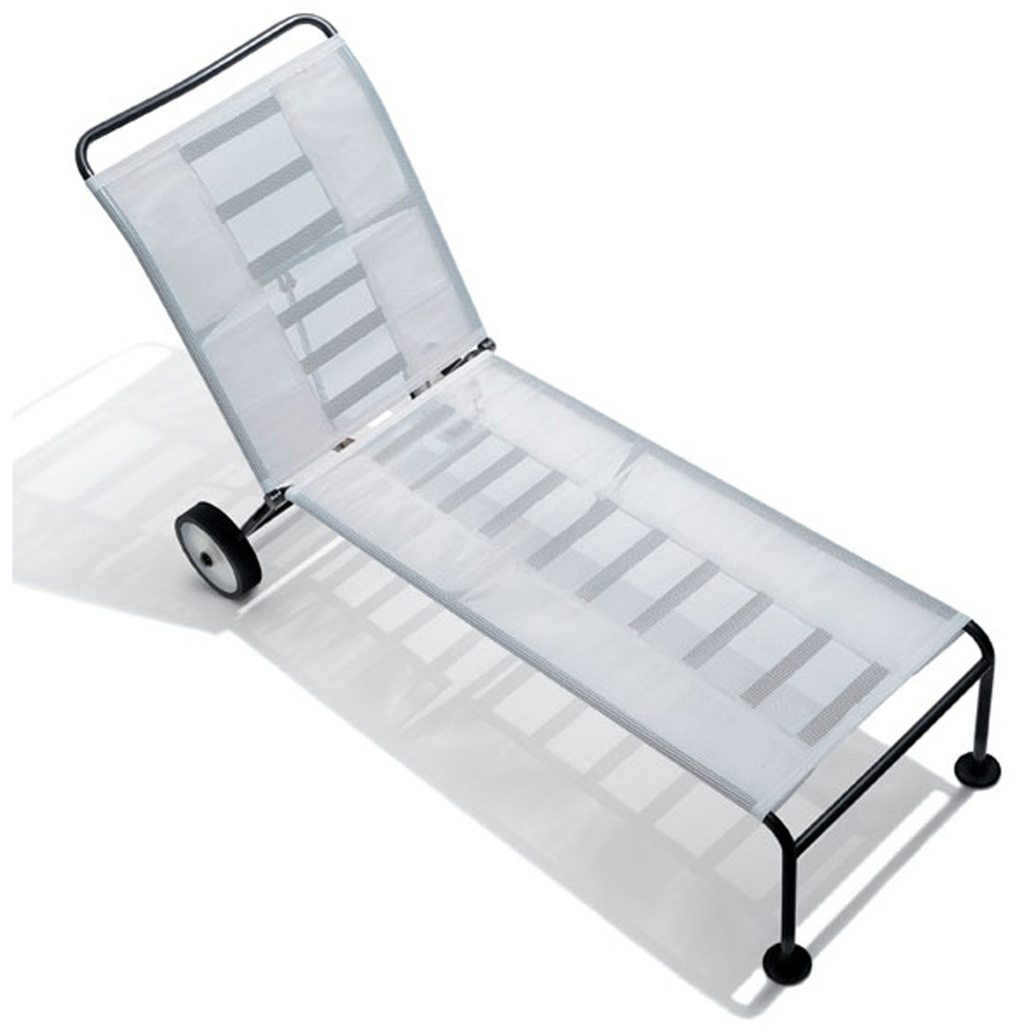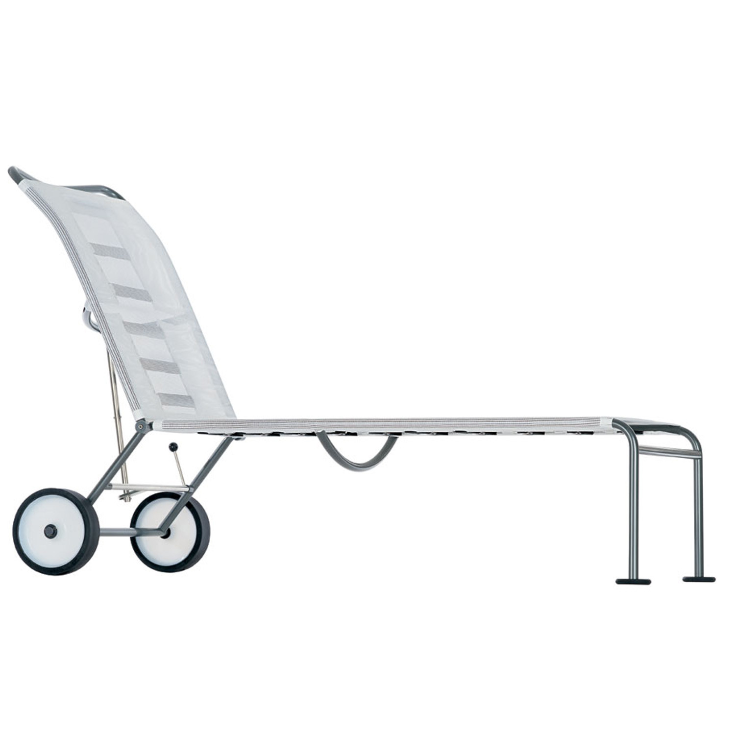 Introducing the Green Outdoor Sun Lounger by Alias. This outdoor lounger is the epitome of relaxation and style, designed to enhance your outdoor space and provide you with the utmost comfort. Crafted with a brushed stainless steel structure, this lounger is not only durable but also visually stunning. The addition of white nylon wheels allows for easy mobility, so you can position yourself in the perfect spot to soak up the sun or enjoy the surrounding views. The seat and backrest of the Green Outdoor Sun Lounger are made of fire retardant PVC covered polyester mesh. This material not only offers exceptional support but is also water-resistant, making it perfect for outdoor use. You can lounge comfortably without worrying about spills or splashes. Experience the ultimate in outdoor relaxation and style with the Green Outdoor Sun Lounger. Don’t miss out on this irresistible blend of comfort, durability, and contemporary design.