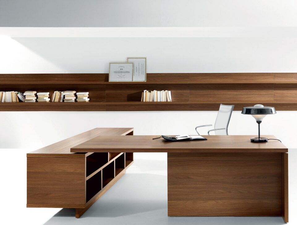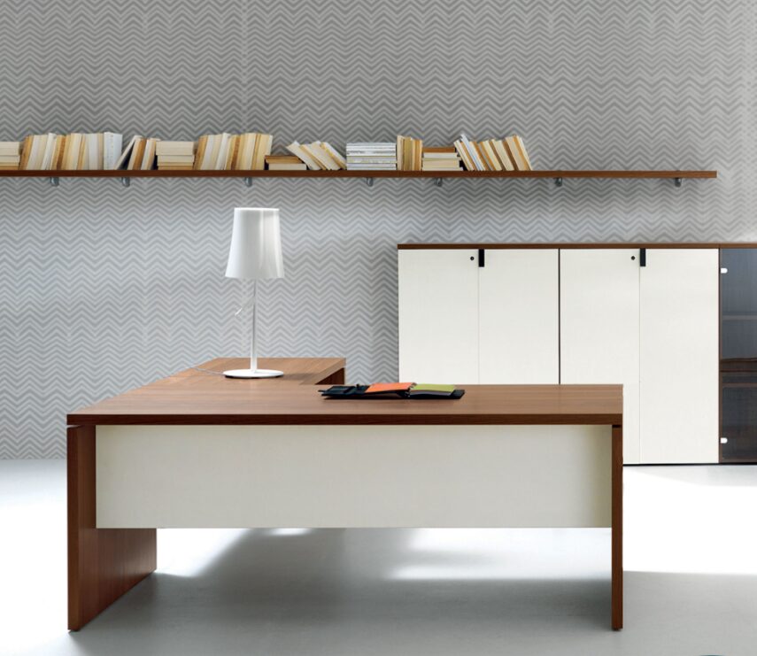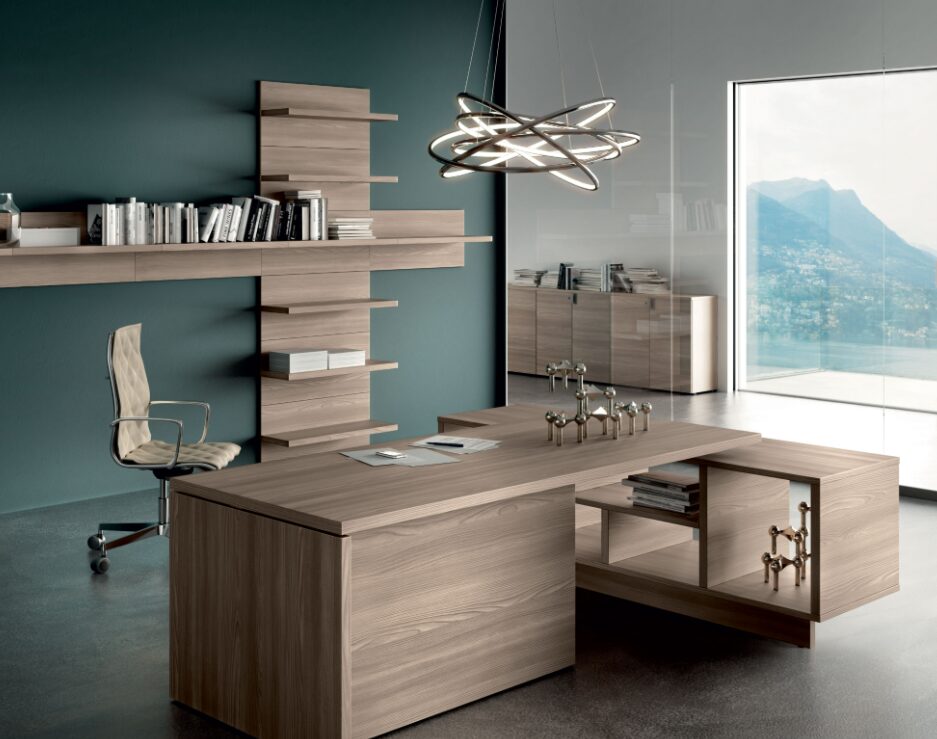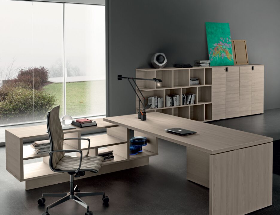 One standout feature of the Lithos contemporary executive desk is its modularity. The “Presidential” desk can be expanded with front and side extensions, allowing for a customized workspace that supports productivity and professional needs. The Lithos executive collection is designed to provide both aesthetic appeal and high functionality, making it suitable for demanding executive environments. Its modern look and practical design ensure that it integrates seamlessly into any office setting, adding sophistication without excess.