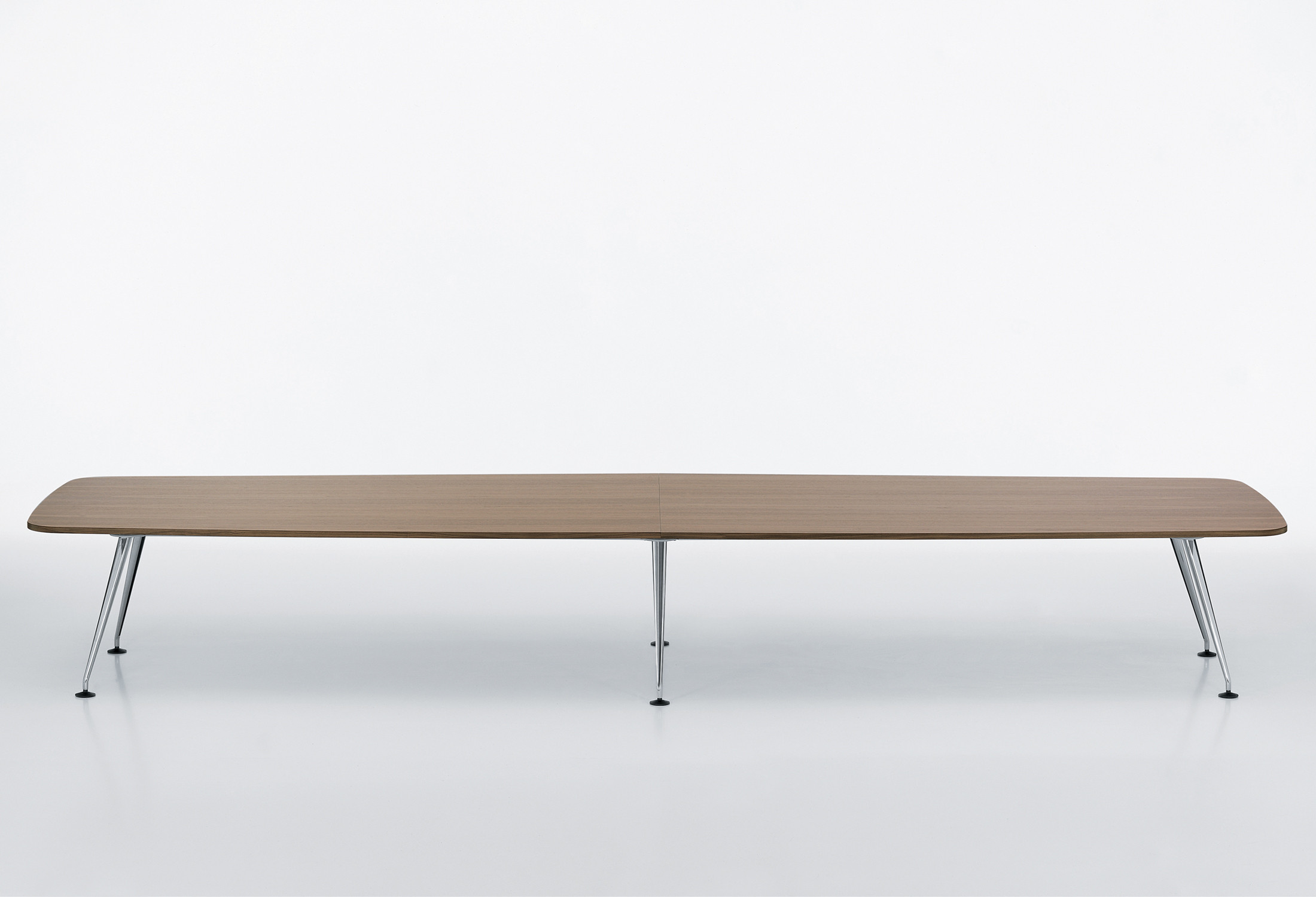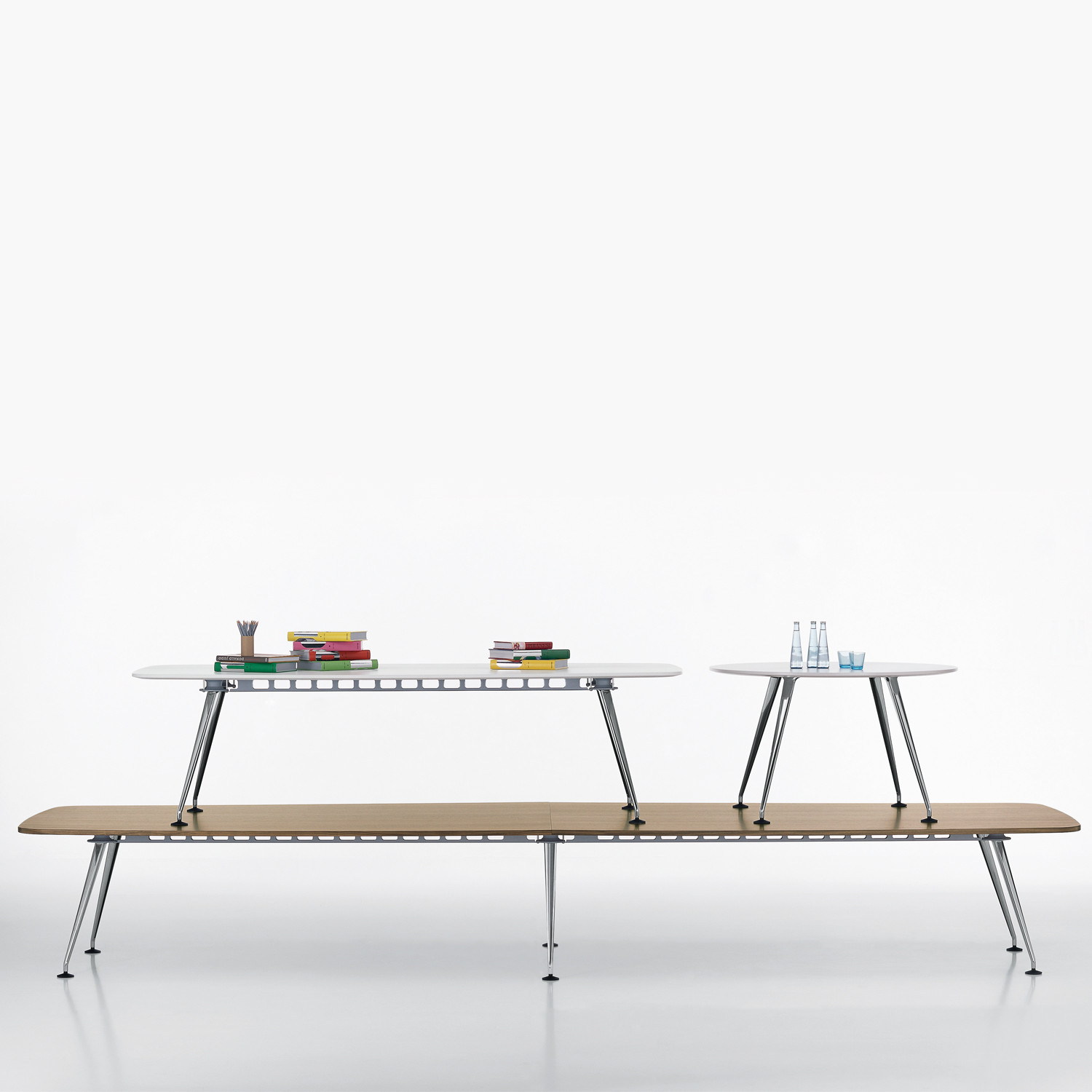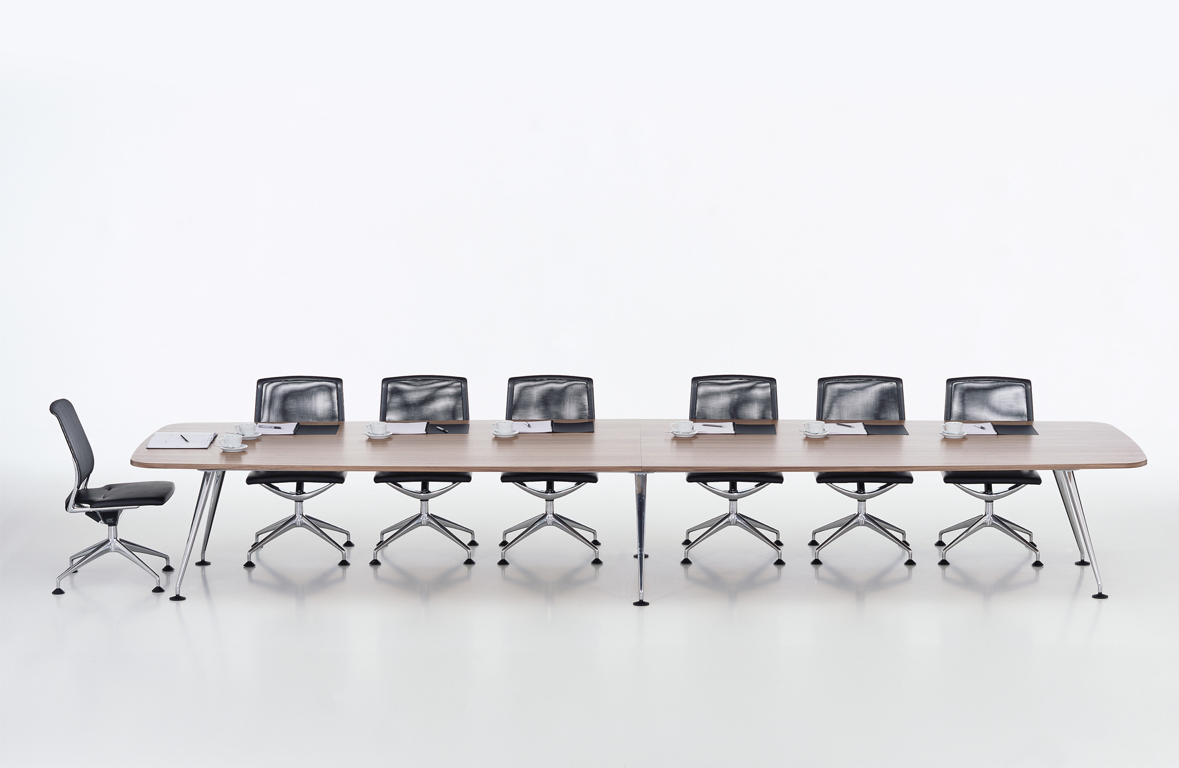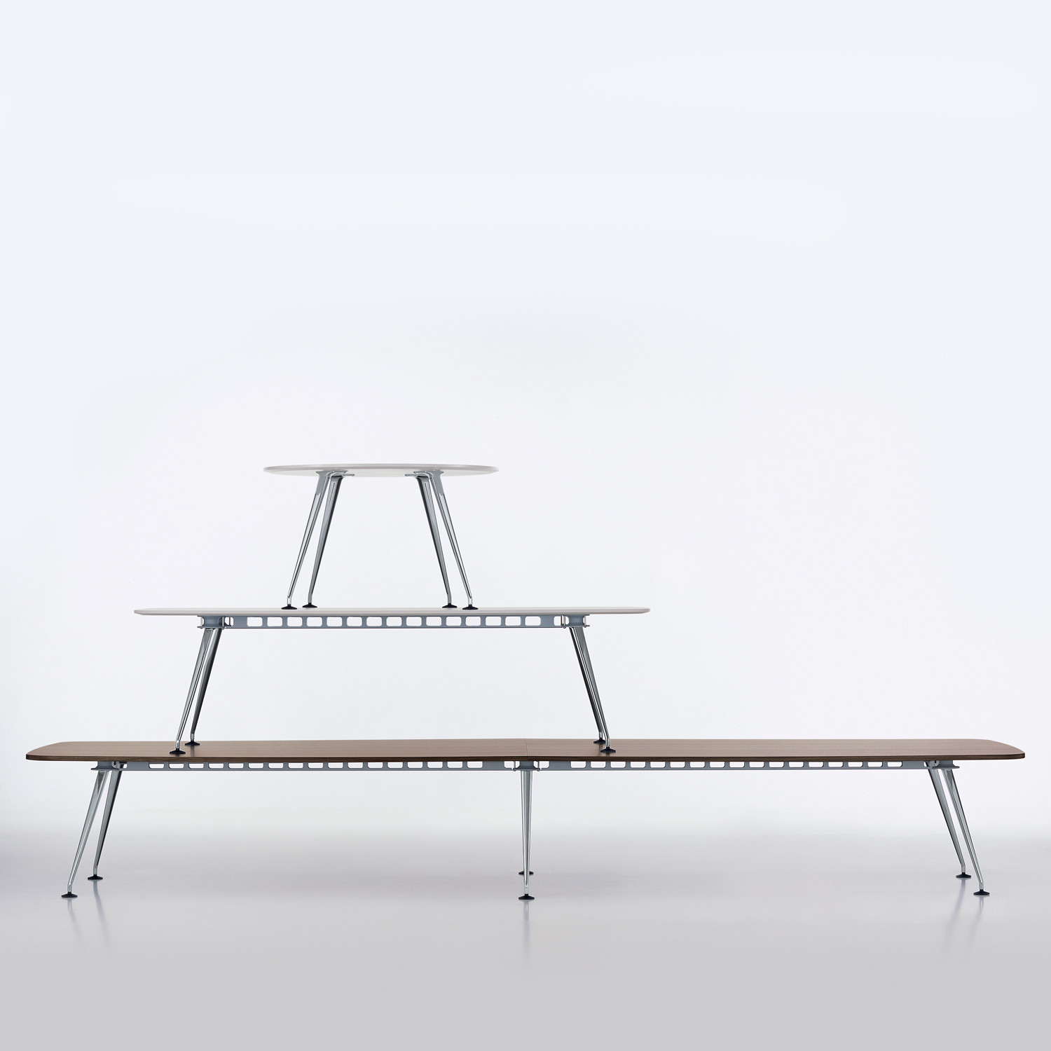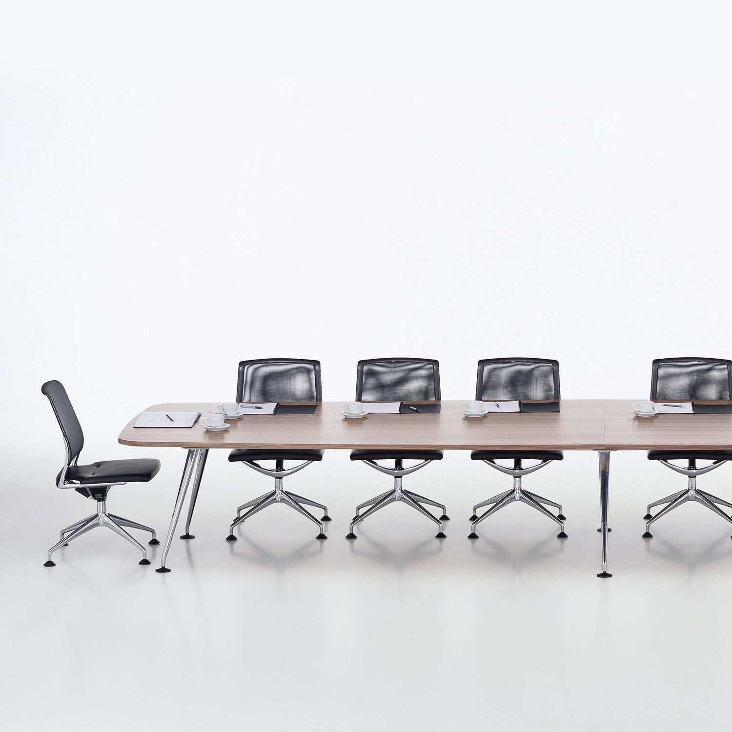 The MedaMorph Table System is a versatile and high-quality table system designed for conference and meeting spaces. Developed in collaboration with renowned designer Alberto Meda, it features a modular base construction that allows for flexible configurations in almost any shape or size. This adaptability makes it an ideal solution for various professional environments, where different dimensions and arrangements are needed.