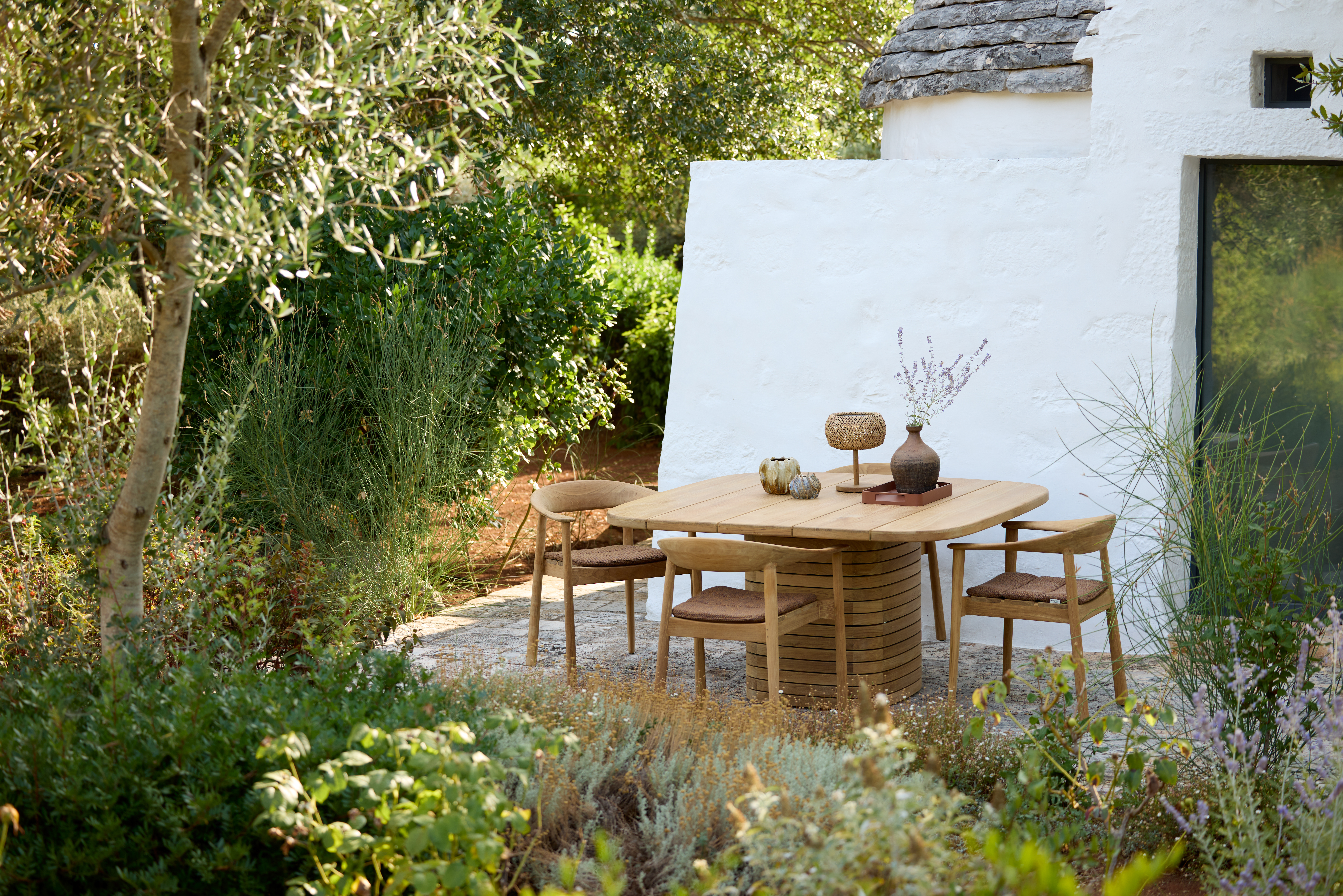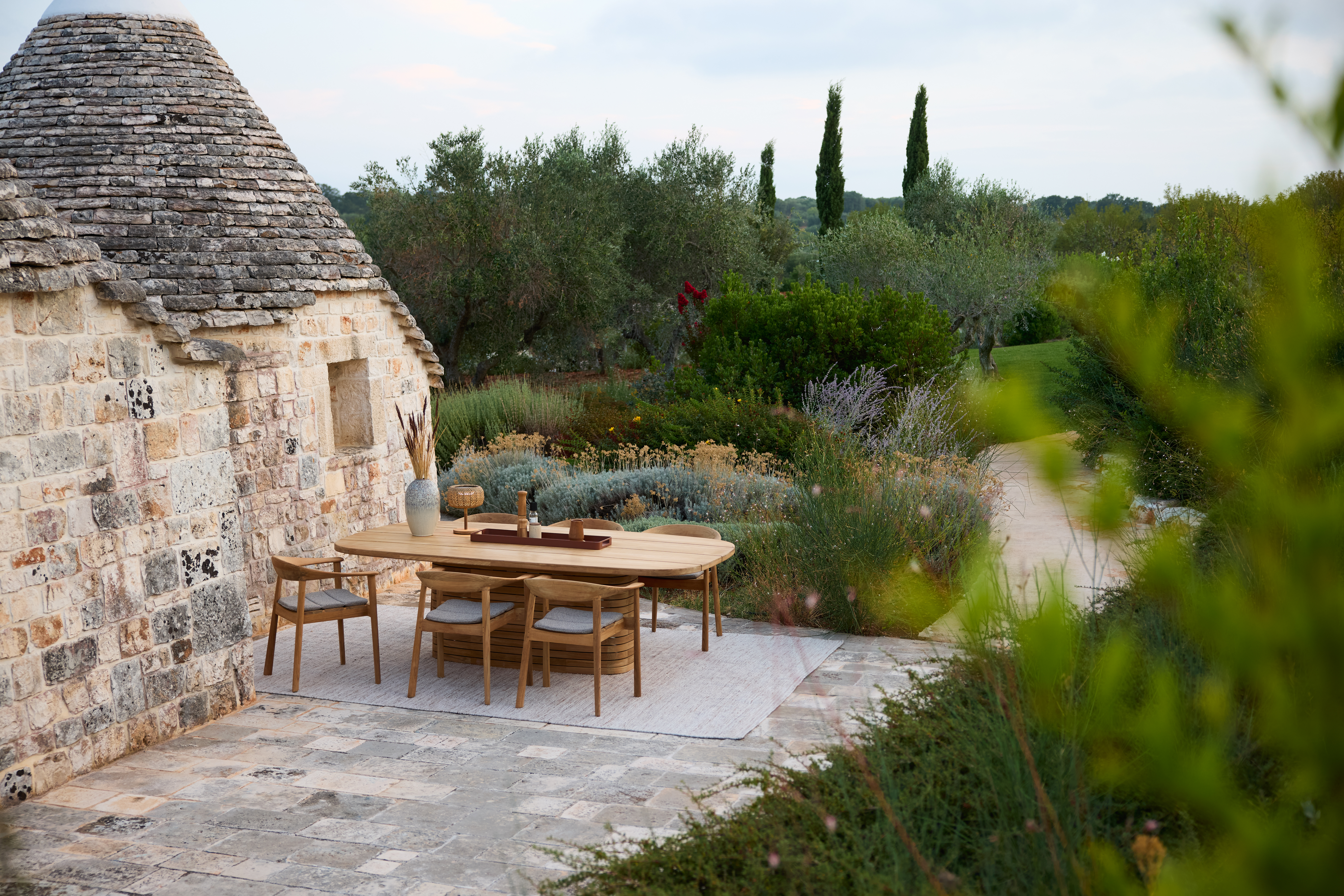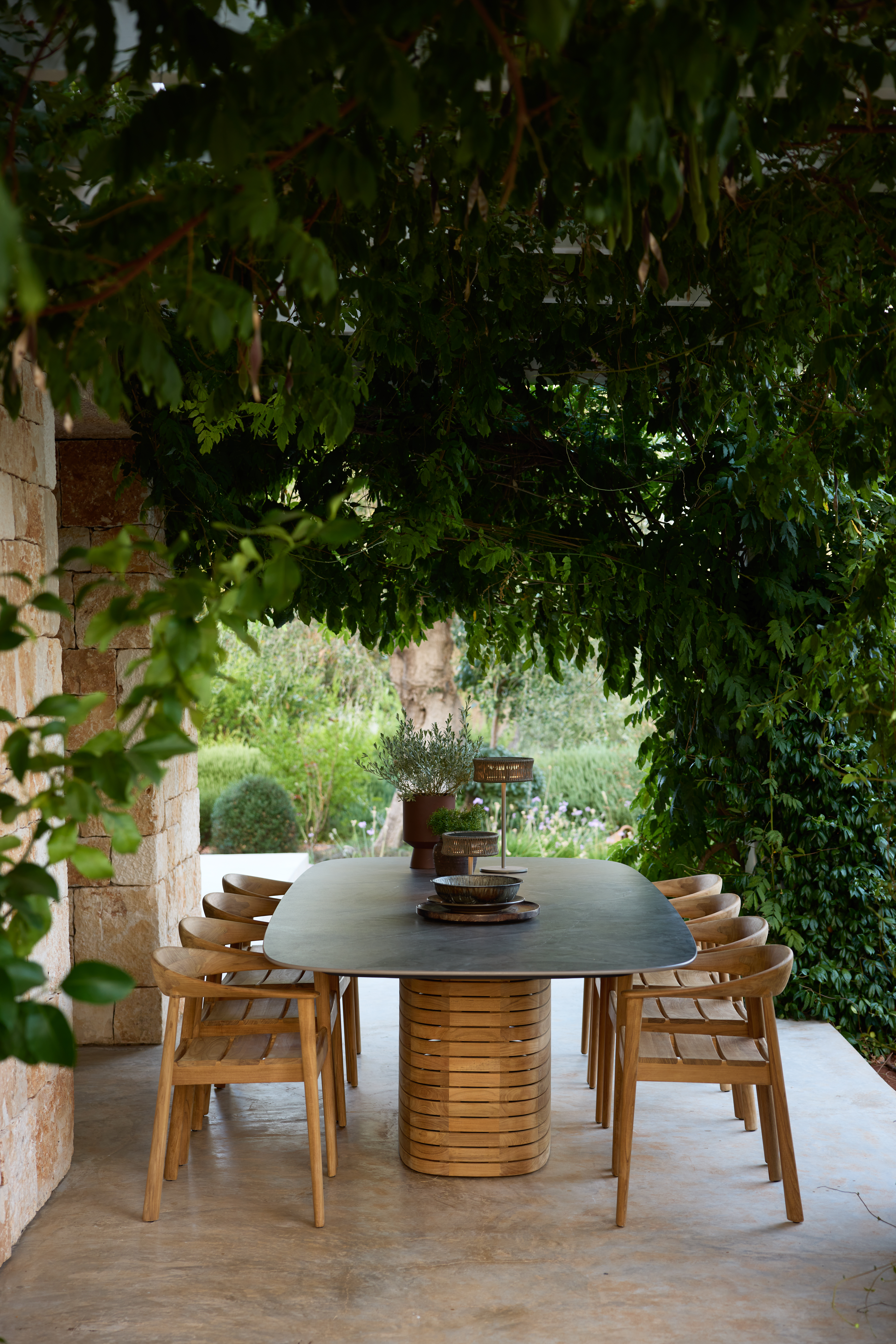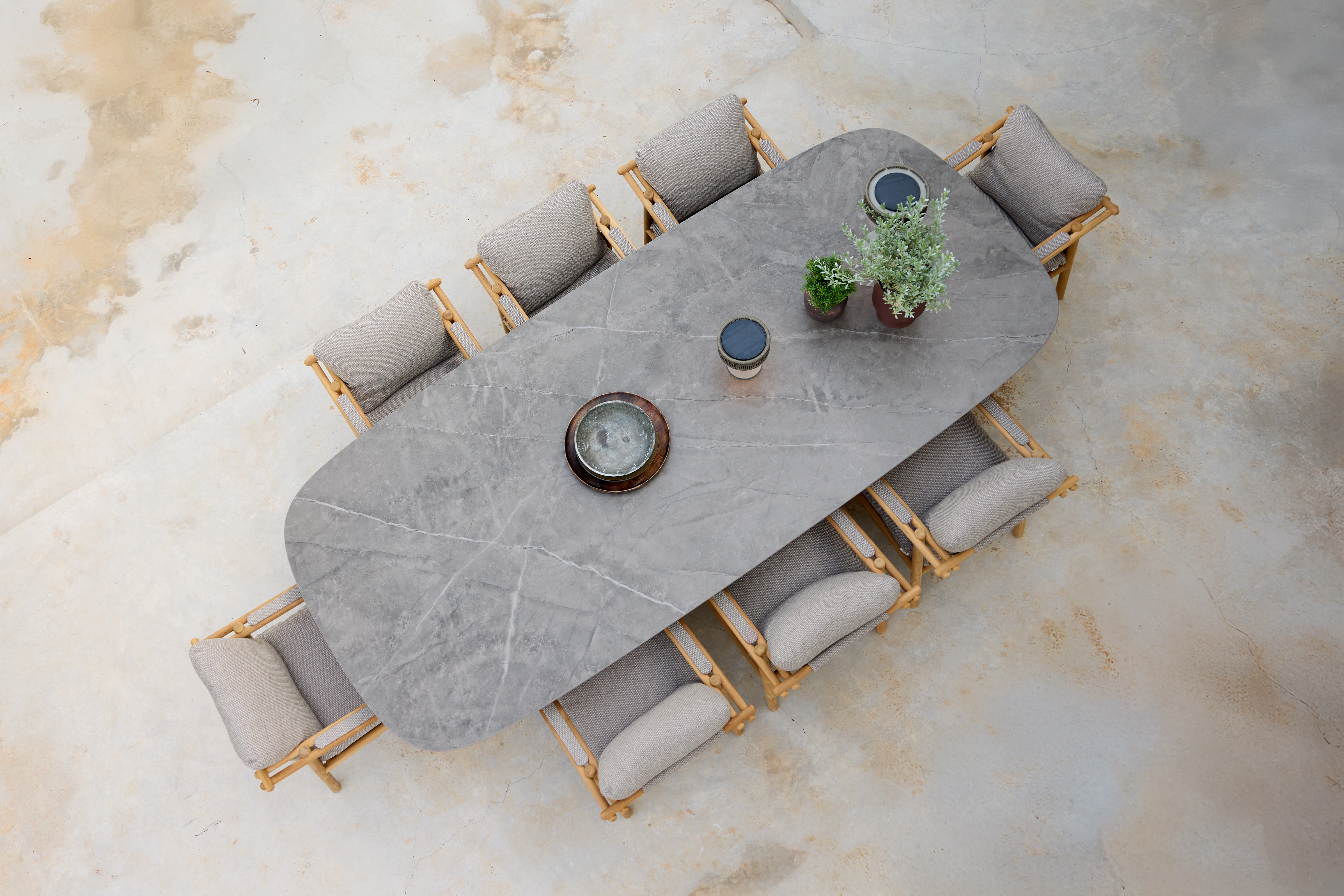 Perfect for both homes and hospitality settings, the table is designed to bring people together, offering plenty of room for relaxed meals, social gatherings, and outdoor entertaining. Its elegant shape and refined design help create a welcoming setting for dining.