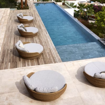Designed by Cane-line Design, the Ocean Large Daybed features a sculptural round shape that exudes both elegance and comfort. Its voluminous appearance adds a touch of luxury to any outdoor space, instantly transforming it into a serene oasis.