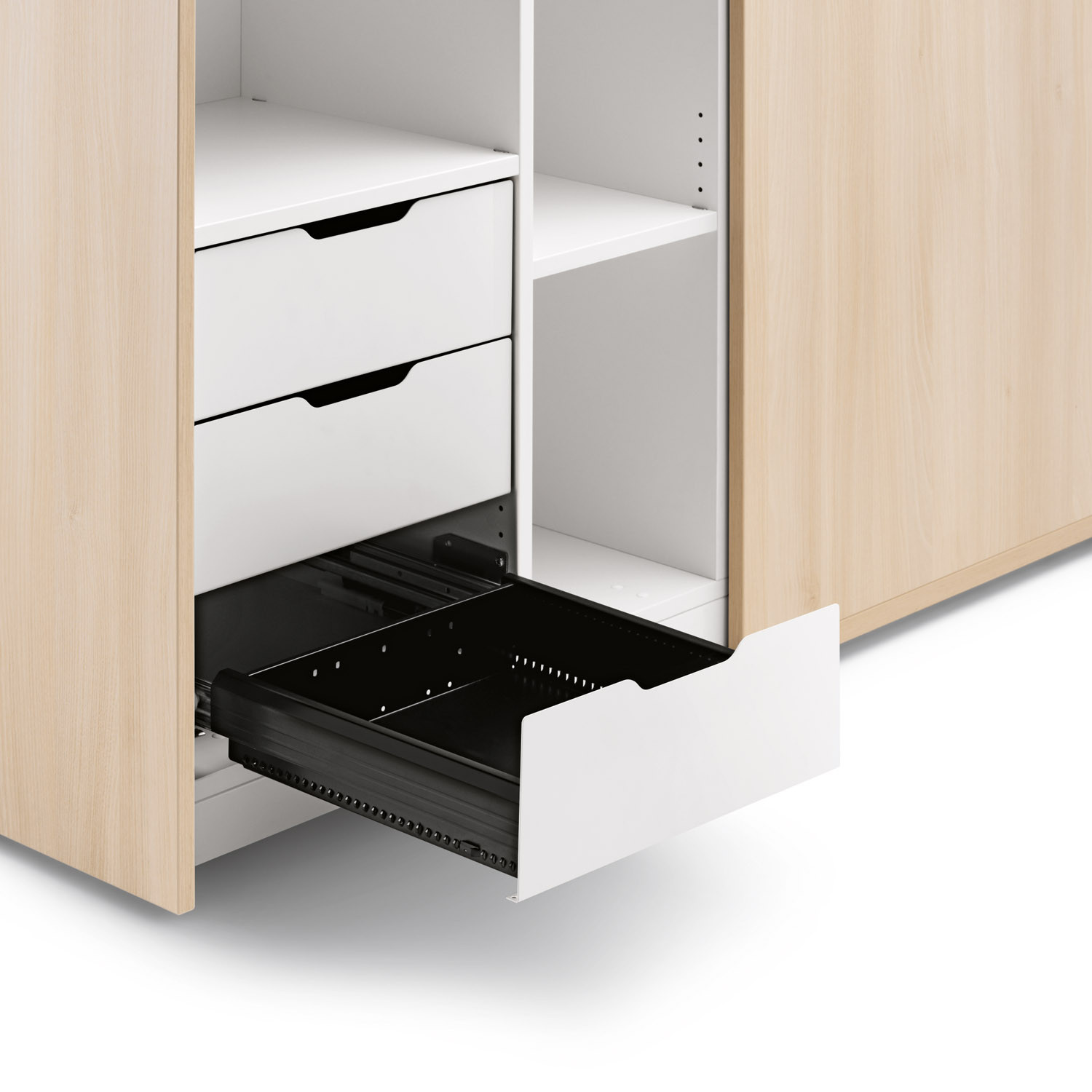 Introducing Sedus Tall Pedestals – the ultimate solution for maximizing storage space while adding style and functionality to your office environment. With their innovative design and versatile features, these pedestals are the perfect choice for both open-plan workstations and private office settings. Sedus Tall Pedestals are designed to provide maximum storage capacity, making them ideal for keeping your workspace neat and organized. With three different variants available, including the tall pedestal with 3 binder heights, the table height version, and the combined pedestal with an add-on shelf, you can choose the configuration that best suits your needs. But Sedus Tall Pedestals are more than just storage units. They are multifunctional furniture pieces that can be used to create separate work zones or screen workstations for enhanced privacy. The top of the inner carcass even acts as a return table when extended, providing additional space for communication and collaboration. In addition to their functional benefits, Sedus Tall Pedestals also offer customization options. You can choose from a variety of interior configurations and accessories to personalize your storage space according to your unique preferences. From compartments for valuables to socket modules for mobile devices, these pedestals are designed to meet your specific needs. Whether you need individual storage at a workstation or efficient storage space for multiple users, Sedus Tall Pedestals offer the perfect solution.