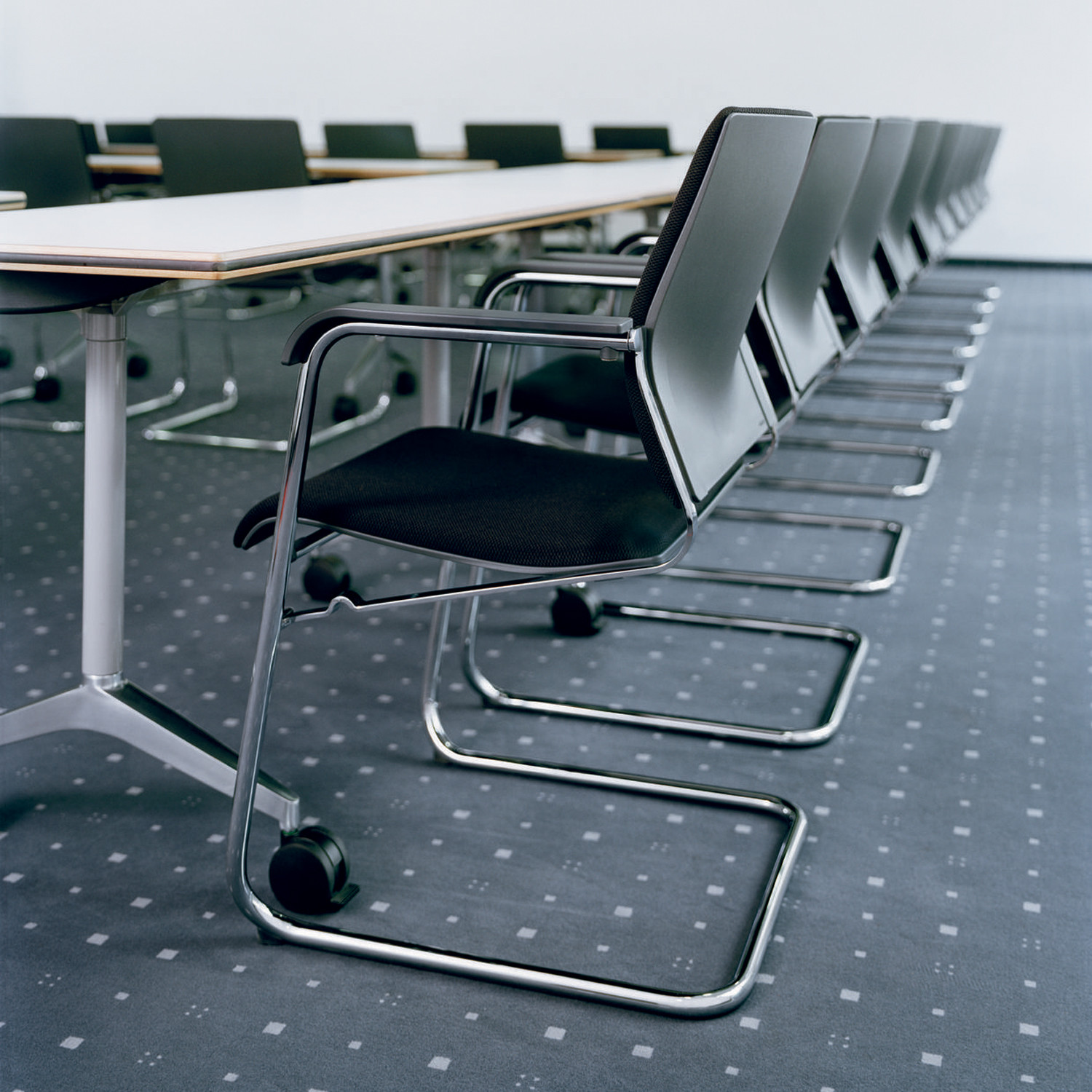 The Wilkhahn Timetable Tables is the pinnacle of innovation and convenience in mobile conference tables. Designed by renowned designer Andreas Striko, this foldable meeting table is perfect for any dynamic conference area, combining brains and beauty to produce intuitive functionality. Featuring a unique design that allows the tabletop to be tipped up and the foot section to retract with lockable castors, the Timetable Tables is not only easy to move from room to room but also compactly nests into one another, saving valuable space and time. So, whether you require temporary and flexible meeting solutions or require a fully functional conference table, the Wilkhahn Timetable Tables is your perfect option. In summary, the Wilkhahn Timetable Table is a masterpiece of design and functionality that has readjusted the entirety of mobile conference tables’ concept. It’s perfect for any dynamic conference area, boasts high quality, smart appeal, durability, stability and is more cost-effective in the long run, making it an irresistible addition to any workspace.