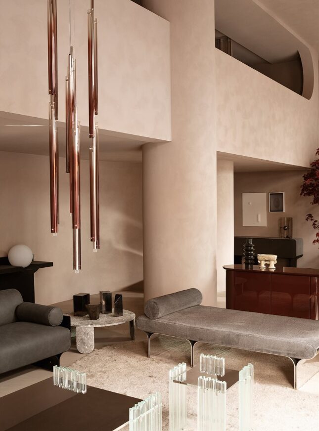 The Tratto Hanging Lamp harmonizes precision-cut crystal, metallised hues, and polished nickel to create a sculptural statement. Emerging as a striking suspended LED fixture, the Tratto hovers gracefully over office desks, lounge areas, or dining zones.