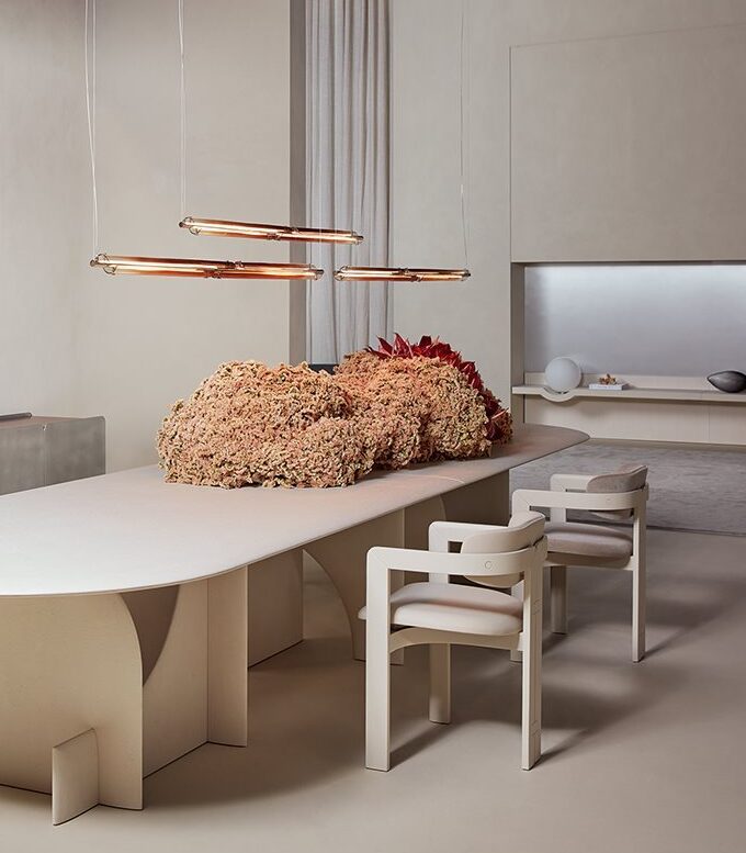 Available in both horizontal and vertical orientations, further extending the customization of the Tretto Hanging Lamp. Whether as a singular pendant or a cascading chandelier, the Tratto office hanging lamp bolsters any modern office interior.