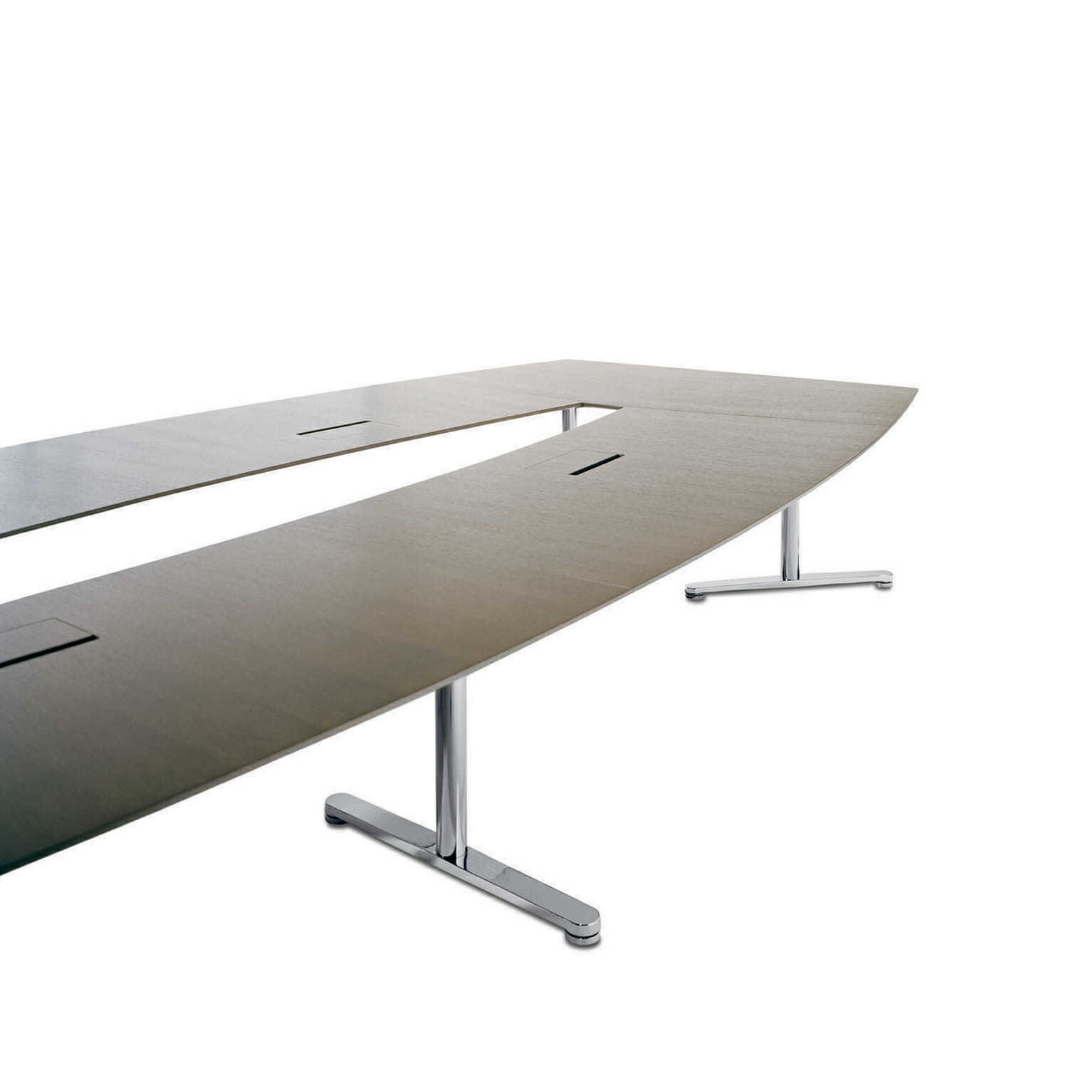 Introducing the Travis Conference Table by Wilkhahn – the epitome of customizable luxury and innovative design. With its modular frame, state-of-the-art media integration, and impeccable craftsmanship, the Travis Conference Table is the ideal solution for creating conference table configurations that are a model of excellence. Not only does the Travis Conference Table excel in its design versatility, but it also seamlessly integrates modern media technology. The perfect integration of state-of-the-art media components allows for effortless connectivity and enhances collaboration during meetings. From video conferences to presentations, the Travis Conference Table ensures that technology is integrated seamlessly into the overall design, providing a cohesive and efficient working environment. In addition to its customizable form and innovative features, the Travis Conference Table exhibits Wilkhahn’s commitment to quality and aesthetics. With two table leg variants and three different types of edge profiles, combined with a wide choice of Wilkhahn surface finishes, the Travis Conference Table merges aesthetically with any individual space and design theme. Elevate your conference room with the irresistible appeal of the Travis Conference Table. With its unmatched flexibility, integrated media technology, and impeccable design, this table is the perfect choice for those who seek to create a collaborative and stylish meeting space.